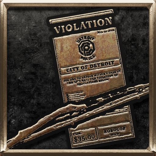 Erhält man, wenn man ein Strafmandat ausgestellt hat. Sobald man in "Suche nach Soot" das erste Mal den frei begehbaren Innenstadtbereich von Detroit erreicht, kann man optionale Aufgaben in der Stadt annehmen. Dazu gehört auch das Ausstellen von Strafmandaten, zum Beispiel für falsch geparkte Autos. In der RoboCop-Sicht ( gedrück halten) lassen sich solche Vergehen leichter anhand des Lupen-Symbols entdecken. Hält man anschließend zum Beispiel an der Windschutzscheibe des Fahrzeugs
