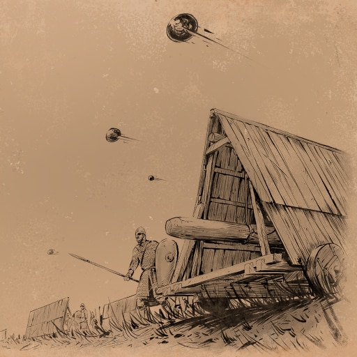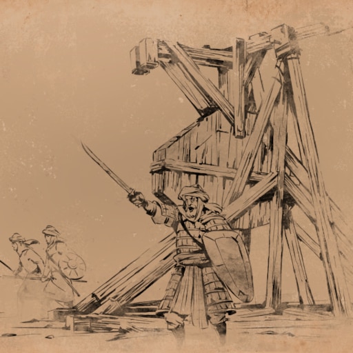 "Erstürmen Sie eine feindliche Mauer mit einem Belagerungsturm."